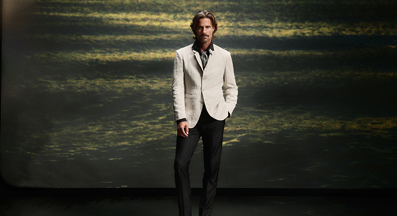 ROSCOE 工裝外套 以義大利亞麻混紡製成,無內裡設計透氣輕盈。經特殊工藝與紗染布料強化質感與色澤清晰度,三顆釦西裝領搭配工裝細節,融入實用美學,可與同款長褲搭配呈現整體感。